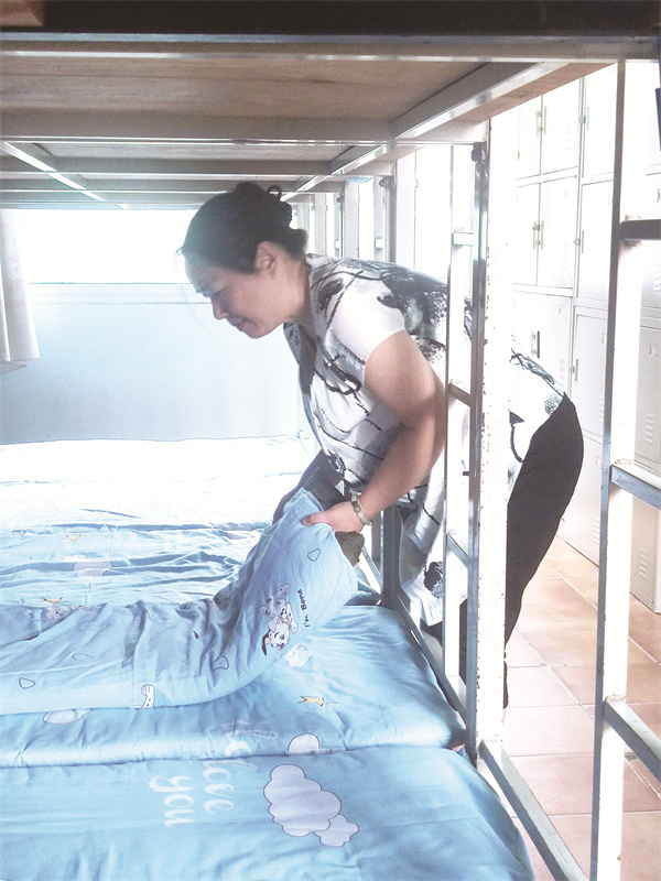 小學生活老師主要的職責是做好學生在校期間的吃、喝、洗、刷等各項服務工作。李會麗每天早上五點半起床,做好孩子們早餐前的準備工作;六點叫醒孩子,幫助他們洗漱,梳頭;然后一路小跑到食堂接餐,分發(fā)飯菜,一份一份擺放在飯桌上;清點就餐人數(shù),登記沒吃飯的孩子,逐個叫來;有些孩子飯量大,要及時給他們添飯,讓每個孩子吃飽吃好。招呼著學生去上課后,就忙著清理餐具,擺齊桌椅。餐具每周要消毒兩次,餐廳地板每天要拖三次。學生上課時,李會麗要進學生宿舍檢查,及時整理內務。夏季每2天給學生洗一次澡,冬天一個星期洗一次。給他們換上干凈的衣服,再把臟衣服標上名字拿去洗,曬干后疊整齊放入學生個人衣柜。學生廁所更是隨臟隨掃,上下午要各打掃三次。一天的工作忙完,直到十一點才能躺下休息,還要在手機上定好鬧鐘,夜間每三個小時起來一次,給學生蓋被子,及時叫醒孩子起來上廁所。